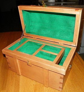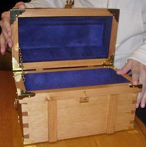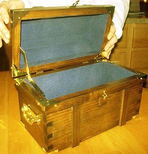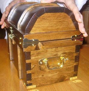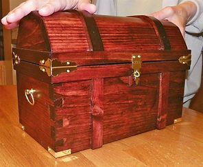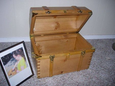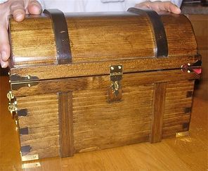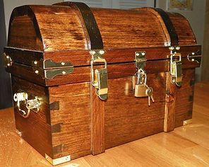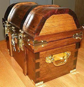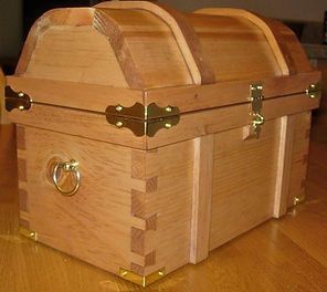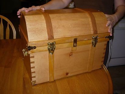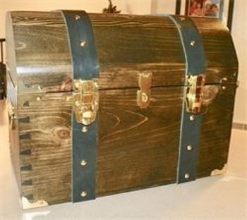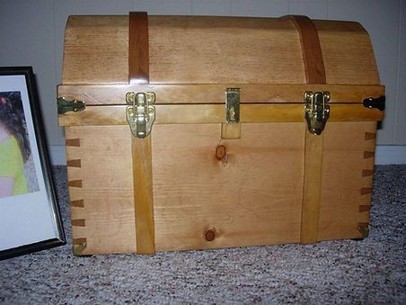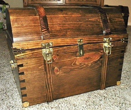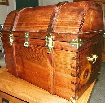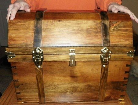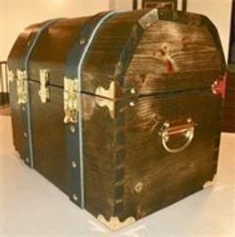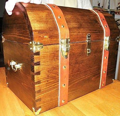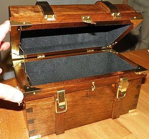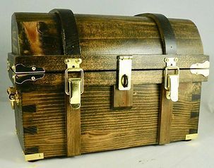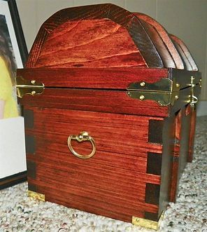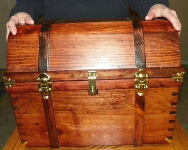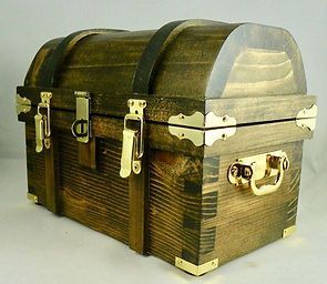 - All Chests are made from pine and stained or painted. The Chests include all brass (USA) hardware, padlock & keys. The Chests have over 25 pieces and weight about 2 pounds. THESE ARE NOT MADE FROM THIN WOOD OR PAPER!!