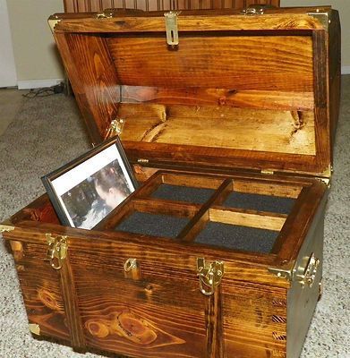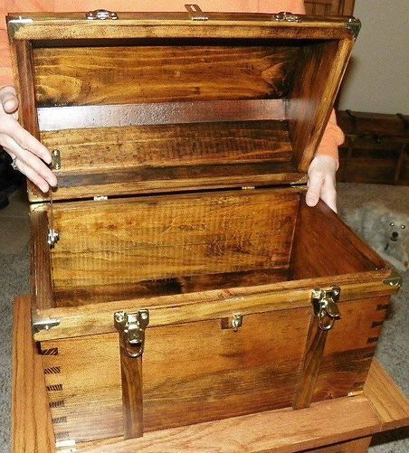 - All Chests are made from pine and stained or painted. The Chests include all brass (USA) hardware. The Chests have over 25 pieces and weight about 12 pounds. THESE ARE NOT MADE FROM THIN WOOD OR PAPER!!